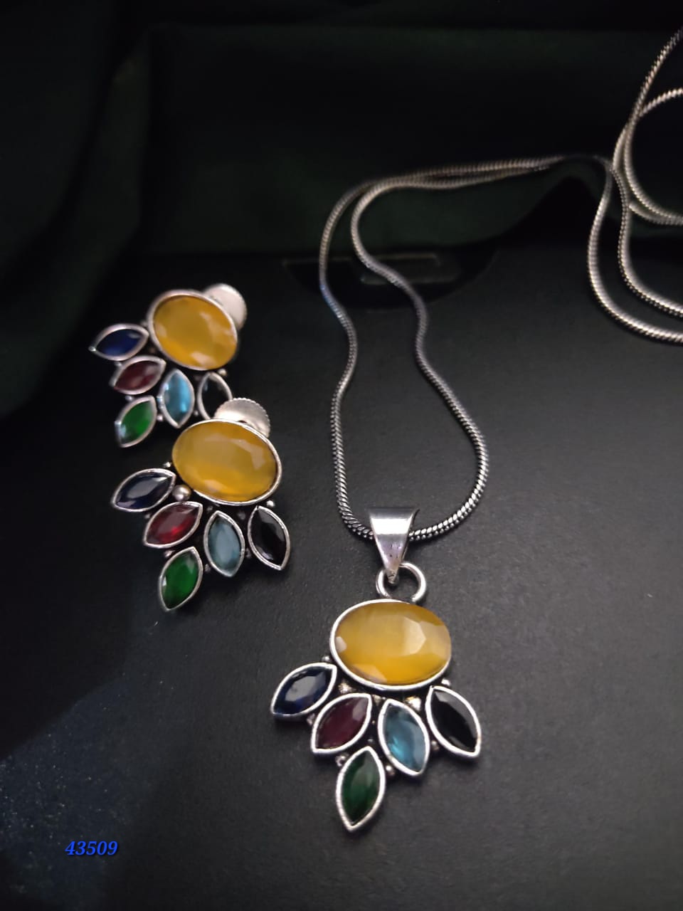 Add timeless charm to your collection with this elegant silver look chain and pendant earrings set. Designed with a sleek and modern touch, the delicate chain is paired with a stylish pendant, making it perfect for everyday wear or special occasions. The matching earrings complement the look with a graceful shine, enhancing your beauty effortlessly.